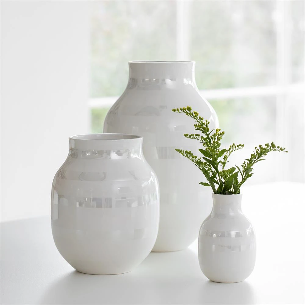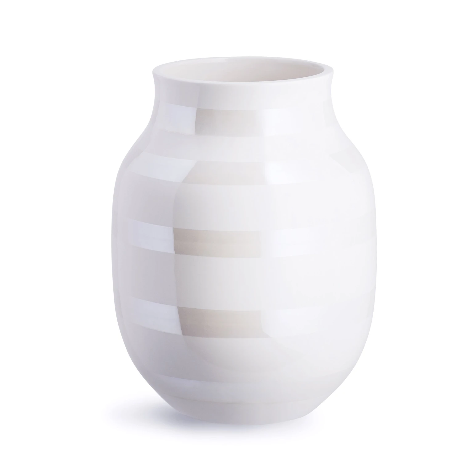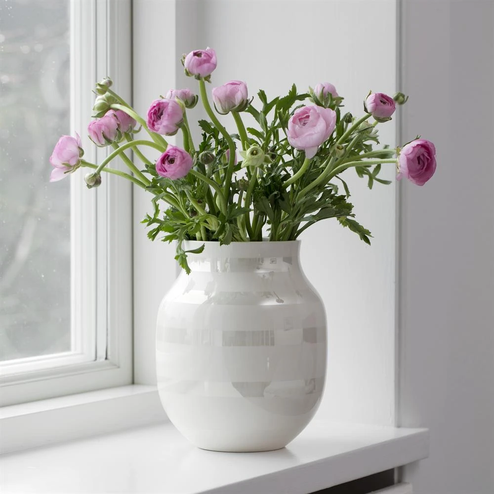 De Omaggio vaas parelmoer van Kähler is een elegante herinterpretatie van één van de meest iconische vazen van Scandinavië. In tegenstelling tot de originele Omaggio vaas – die (hand)beschilderd is met zwarte strepen – heeft deze uitvoering een meer ingetogen karakter. De nieuwe kleur parelmoer is geïnspireerd op de Scandinavische natuur: op de kleur die zichtbaar is in de schelpen op het strand. Het zonlicht tovert het parelmoer tot zachte geel-, roze- en natuurlijke wittinten, die prachtig contrasteren met de witte kleur van de vaas. De vaas is verkrijgbaar in drie verschillende maten!